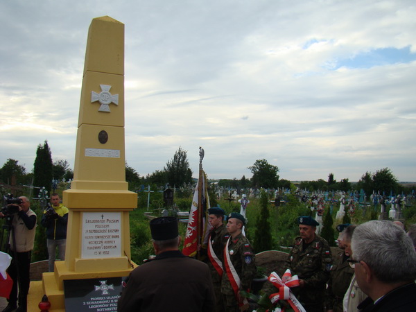 З “Акту відкриття” дізнаємося, що пам’ятник споруджено з ініціативи та завдячуючи “Спілці колишніх леґіонерів польських Гданська”, головній управі “Спілки леґіонерів польських Варшави”, численним пожертвам з Польщі і Румунії. “Акт відкриття”, підписаний членами Почесного і виконавчого комітетів, разом із польською землею було вмуровано у підмурок пам’ятника. У липні 1934 р. “Спілка колишніх леґіонерів польських в Румунії” упорядкувала там усі могили польських стрільців 2-го і 3-го полків II бриґади ЛП. Були створені чотири великі прямокутні братські могили, на трьох з них спорудили пам’ятники з однаковим написом: “Хто б ти не був, навчись від мене, як солодко і шляхетно померти за Вітчизну”. Вони і тепер існують неподалік пам’ятника уланам.