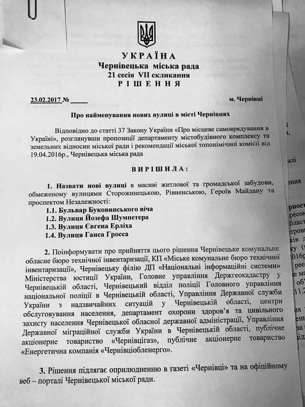 Чернівецька міська рада ударними темпами продовжують германізацію Чернівців.