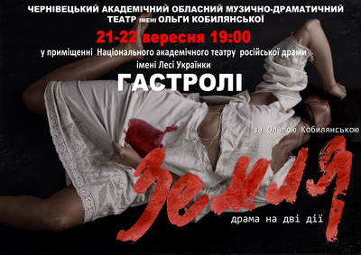 До Дня міста і до 110-річчя будівлі театру Відкриття ювілейного 85-го театрального сезону за О. Кобилянською ЗЕМЛЯ драма дві дії |