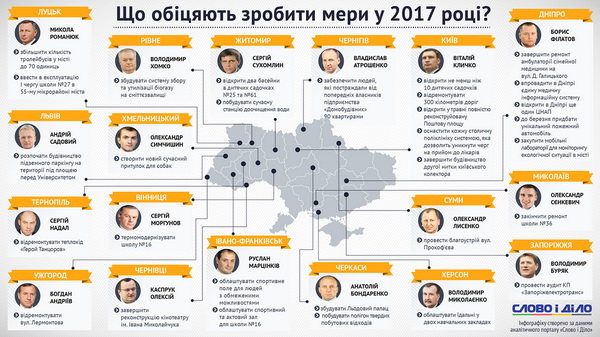 Що ще обіцяли зробити для своїх міст мери обласних центрів України в 2017 році, дивіться в інфографіці «Слова і Діла».