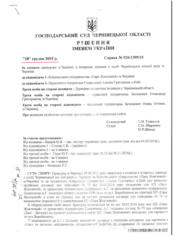 Активісти писали заяви, зі спеціалістами рахували незаконно зрубані дерева, штовхали міську владу, прокуратуру до розірвання незаконного договору з підприємицею А.Смирновою (розуміємо О. Батюкевичем), ходили на судові засідання в Господарський суд Чернівецької області.