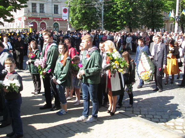 Сьогодні, 9 травня 2015 року, вранці на Соборній площі Чернівців відбулося урочисте покладання квітів та вінків до пам’ятника Воїнам-визволителям.