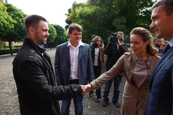 Журналіст Петро Кобевко цілує руку Наталії Королевської. (Фото molbuk.ua)