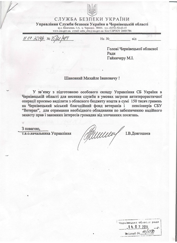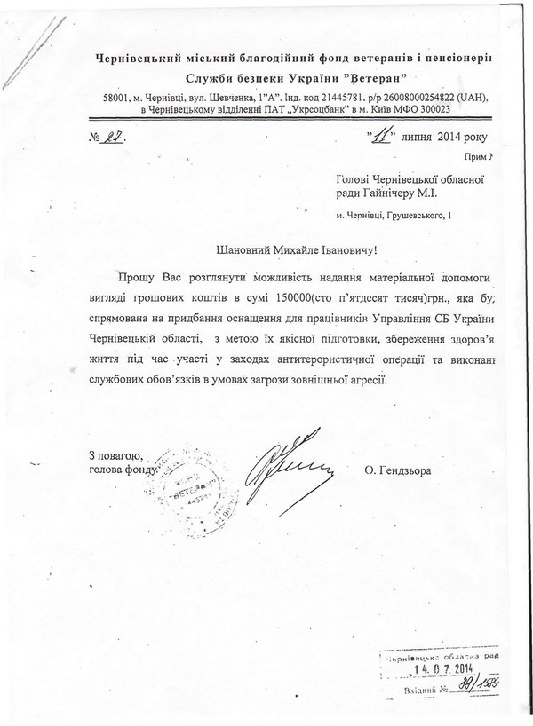 Зокрема Маніліч заявив, що Курко ще в липні 2014 року прийняв одноосібне рішення щодо перерахування 150 тисяч гривень на користь благодійного фонду "Чернівецький міський благодійний фонд ветеранів і пенсіонерів Служби безпеки "Ветеран".