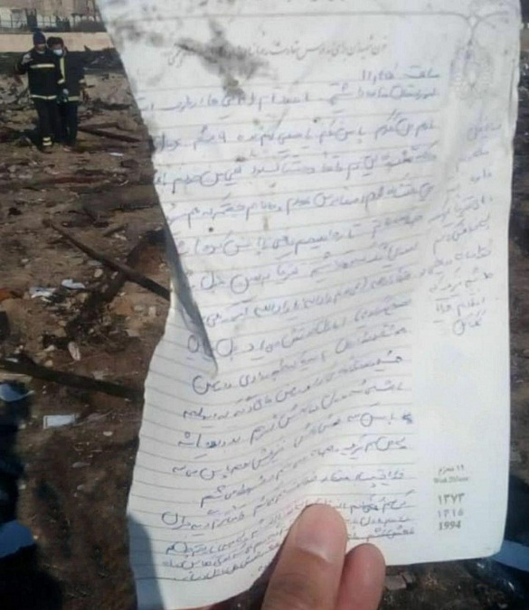 Біля місця аварії українського "Боїнга" в Ірані була знайдена записка зі зверненням до Бога від студента.