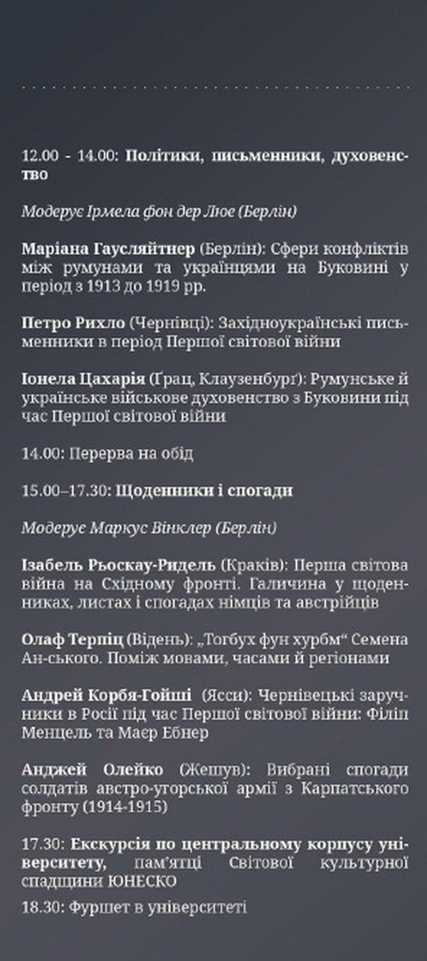 Провідні науковці Європи три дні шукатимуть у Чернівцях політичні та культурні орієнтири часів Першої світової війни