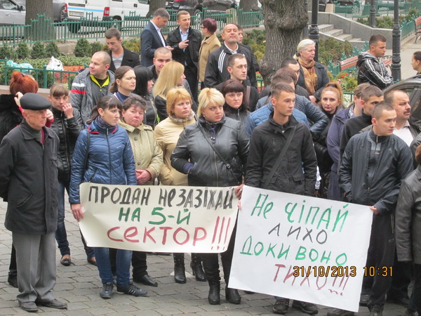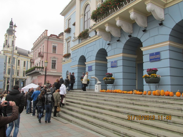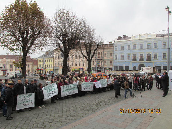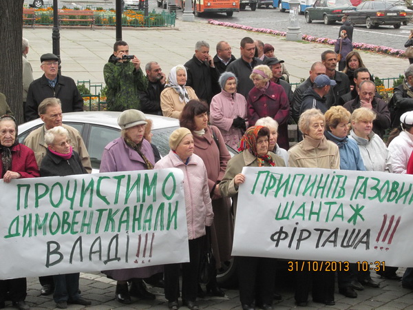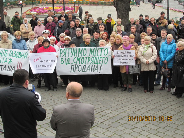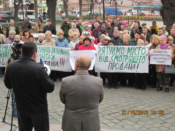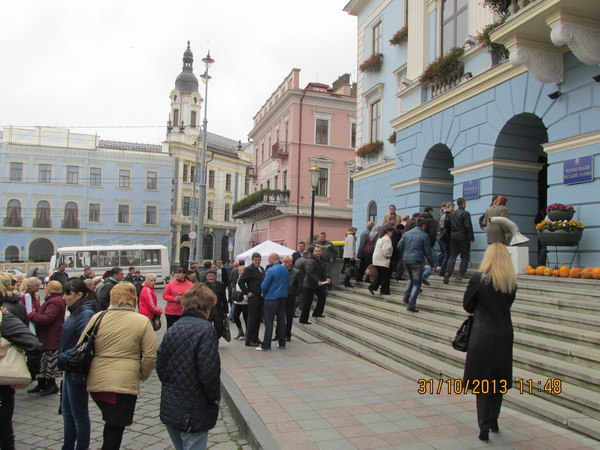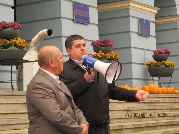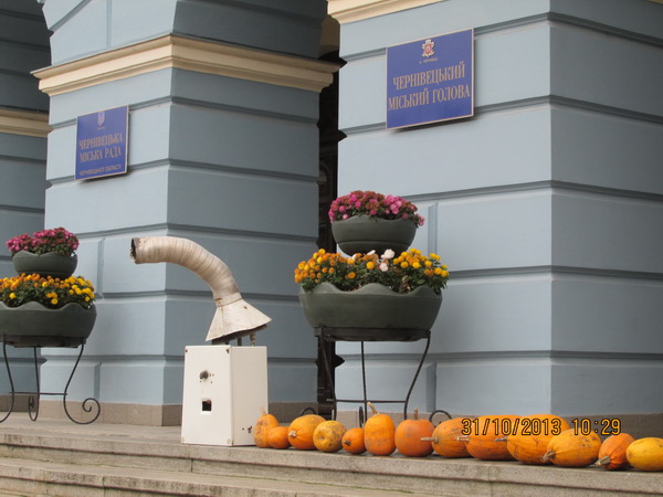 Перед початком сесії Чернівецької міської ради під ратушею зібралося чимало людей. Одразу кілька пікетів прийшли до влади та принесли газову колонку та гарбузи. Вимоги пікетувальників були і еклномічні і політичні. Зокрема, мешканці "хрущовок" вимагали не відключати їхні газові колонки. А підприємці Калинівського ринку виступали проти реконструкції.