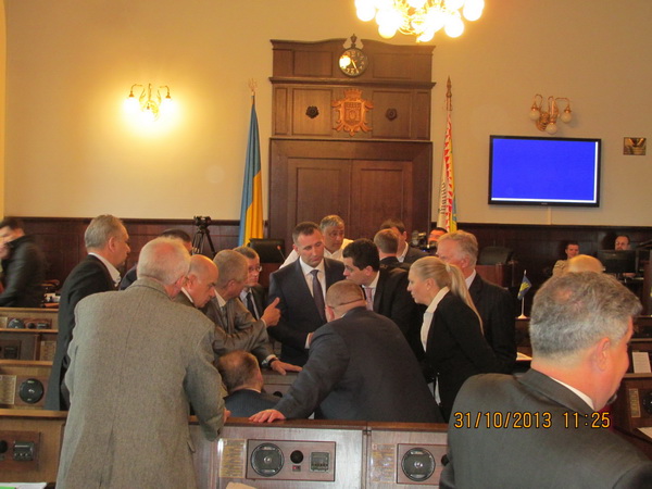 Після оголошення на сесії годинної перерви частина протестувальників зайшла в приміщення ратуші, де з ними мали зустрітися керівники міста і депутати.
