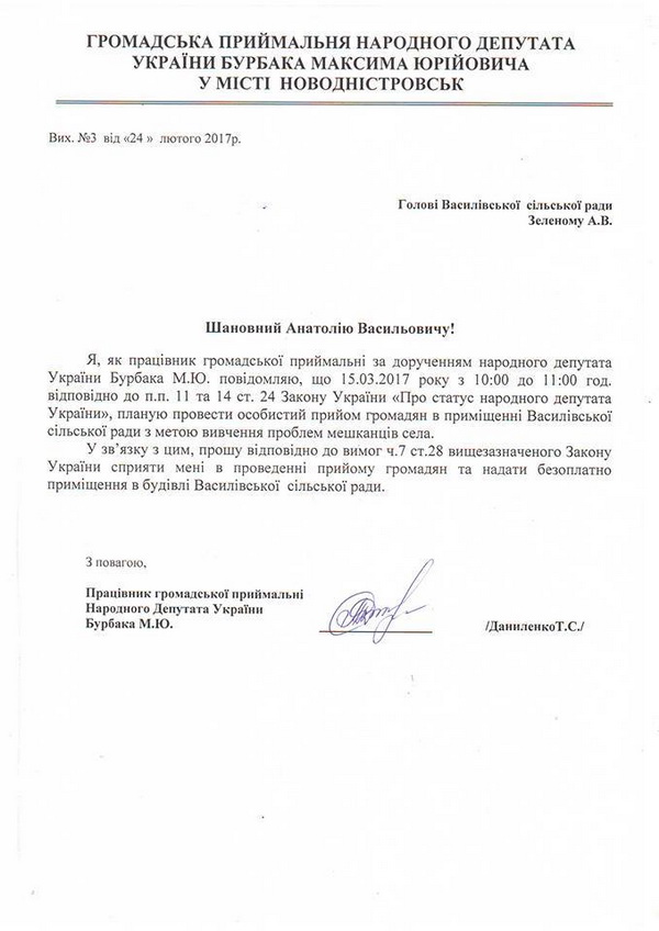 То сільські голови, виявляється, бігцем звітують про всі листи, які надходять на адресу їхніх сільських рад, безпосередньо вищевказаному порталу чи може «кошелькам», які за цим порталом стоять? Оскільки, добре обізнаний з методами роботи власників всіляких там «Услад» та підручних сокирянських «козачків», то не маю жодного сумніву, що це була свідома провокація ретроградів, щоб потім брехати, начебто, народний депутат України Бурбак ховається від людей.