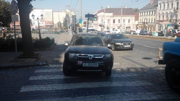 Авто румунських дипломатів перегородило пішохідний перехід та заблокувало рух транспорту у Чернівцях