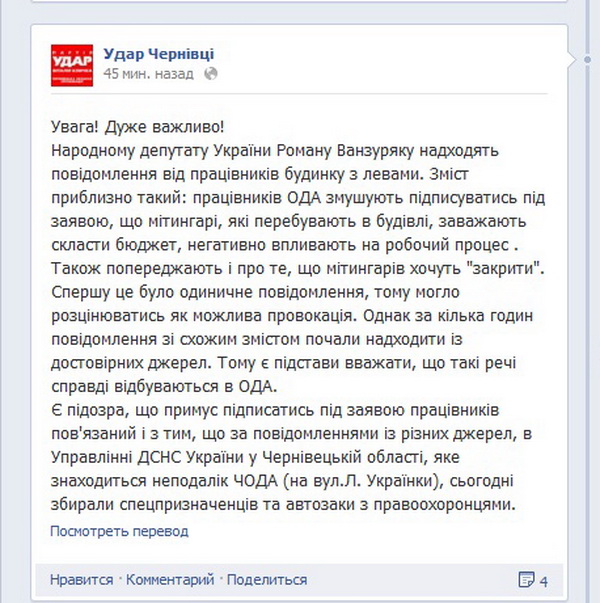 Микола Салагор, депутат обласної ради: "Тепер є намагання створити різного роду провокації, для того аби опозиція почала безпосередню війну не проти влади, яка не бажає розмовляти з народом, а створення непримиримої ситуації з правоохоронними структурами. Безумовно, що ми на цю провокацію не підемо".