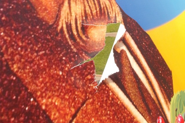 Проте за кілька днів хтось порізав зображення Кобзаря. Щоправда, комунальні служби не спромоглись бодай скотчем заклеїти проріз на зображенні. Відтак плакат із Шевченком світить прорізом, який фотографують туристи.