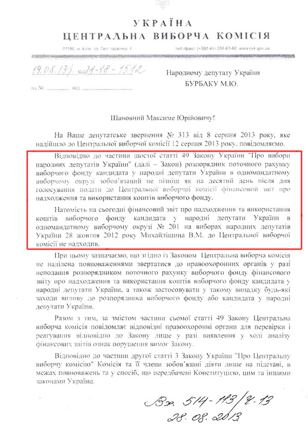 До речі, звіт про використання свого виборчого фонду Михайлішин, всупереч закону, так і не подав (документ додаю). Але це і зрозуміло, якщо відчитатись за такий фонд - то пряма дорога не в парламент, а в буцегарню.
