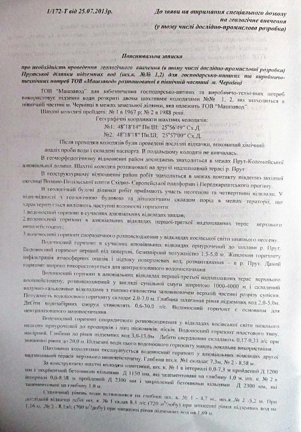 З відповідним клопотанням генеральний директор ТОВ "Машзавод" Віктор Сідляр звернувся до Чернівецької обласної ради. Раніше, нагадаємо, міська влада не раз обіцяла здешевити вартість “золотої” чернівецької води саме за рахунок підземних прутських водозаборів. Потреби міста обіцяли по максимуму задовольняти водою з свердловин, а дорогої дністровської води брати лише необхідний мінімум. З цією метою обіцяли суттєво збільшити забір води із вже існуючих водозаборів Чернівецького родовища на Пруті: наземного – Біла, а також підземних – Очерет, Рогізна, Магала, де існує система штучного поповнення підземних вод. Наприклад, розбудову водозабору у мікрорайоні “Рогізна” обіцяли розпочати у 2012 році. Це станція “Очерет”, що включає зо два десятки підземних свердловин. З них діяли лише кілька, а якби вони всі стали до ладу, то якісною питною водою можна було б забезпечити весь Садгірський район. Тоді ж мали модернізувати існуючі водозабори на Пруті у селах Біла і Магала, а згодом реконструюювати колишній прутський водозабір заводу “Кварц”. Його оснащення додатковою технікою для очищення води дозволило б збільшити забір води із Прута до 10 тис. кубометрів на добу, що цілком покриє потреби мікрорайону “Руський” тощо.