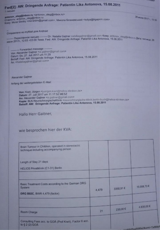 Документи, що підтверджують діагноз хвороби та вартість першоетапного лікування дівчинки Ліки:![]()