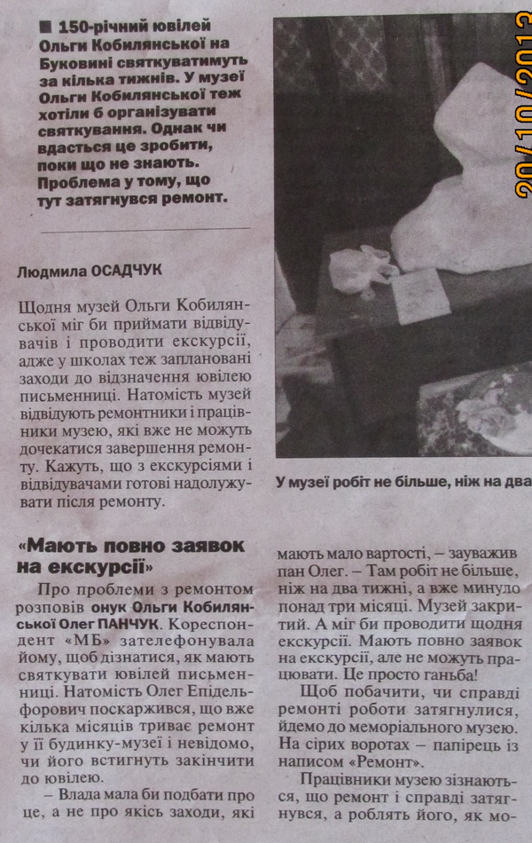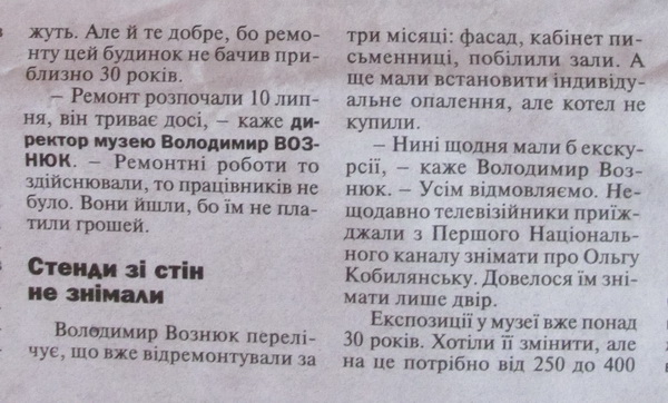 Очевидно варто також зауважити, що влада теж не виконала обіцянок відремонтувати музей видатної писменниці.