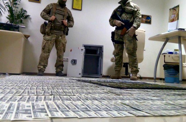 "По моей информации, при задержании у чиновников было обнаружено в общей сложности около 500 тыс. долл. США, а также драгоценности и ценные бумаги. В частности, во время обыска у Шапакина было найдено: $130 тыс. в кабинете; $30 тыс. и €22 тыс. в доме; $170 тыс. и 500 тыс. грн в квартире; - документы на депозитные вложения на сумму 800 тыс. грн, а также незарегистрированное огнестрельное оружие и боеприпасы", - сообщил Найем.
