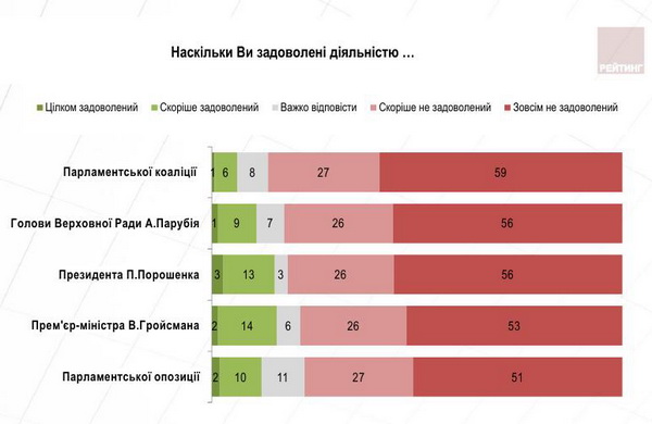 Майже 80% українців незадоволені роботою Порошенка, Гройсмана та Парубія