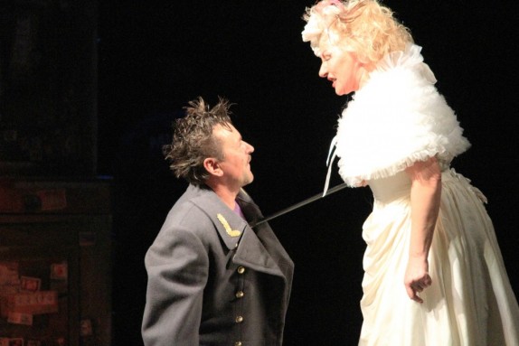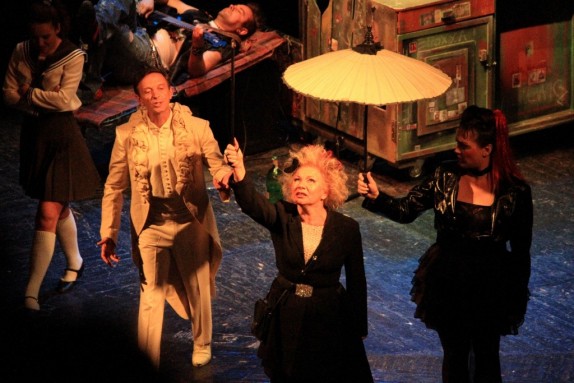 На сцені ніч і наше найближче світило уповні освітлює багатофункціональну шафу (щоб не цитувати – вельмиповажну…), яка перетворюється то на князівський палац, то на пивний бар у американській глибинці. Шекспірівські події у перекладі Андруховича принаймні рухаються у звичному порядку. Та персонажі п’єси знижені мало не до бомжів, тож і титули сприймаються швидше як прізвиська. Дуже засмутилася від Олівії: у цьому трактуванні вона залишає присмак вульгарності.