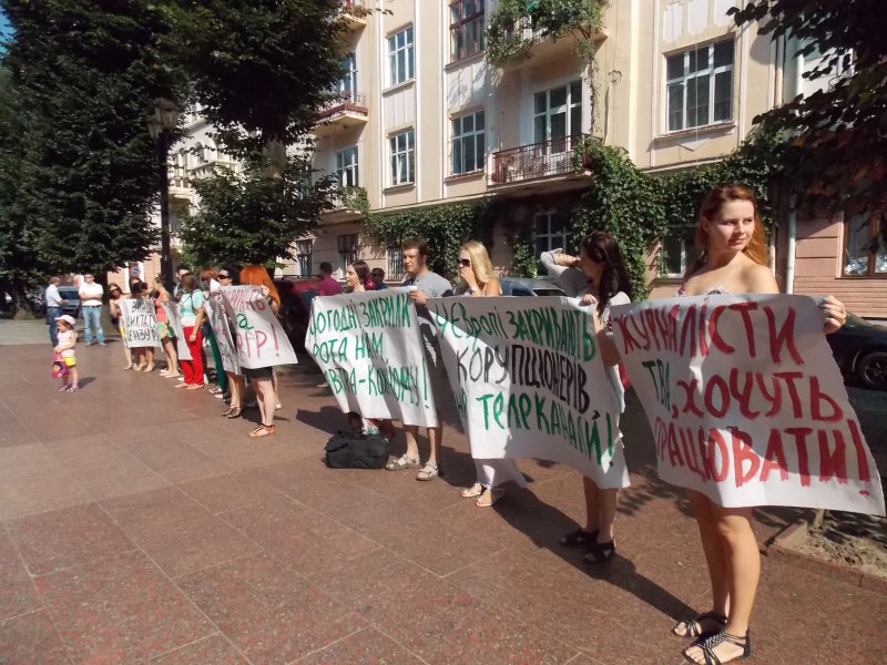 У понеділок, 27 липня, журналісти чернівецького телеканалу ТВА пікетували обласну державну адміністрацію. Під стінами будинку з левами вони чекали виходу губернатора Михайла Папієва.
