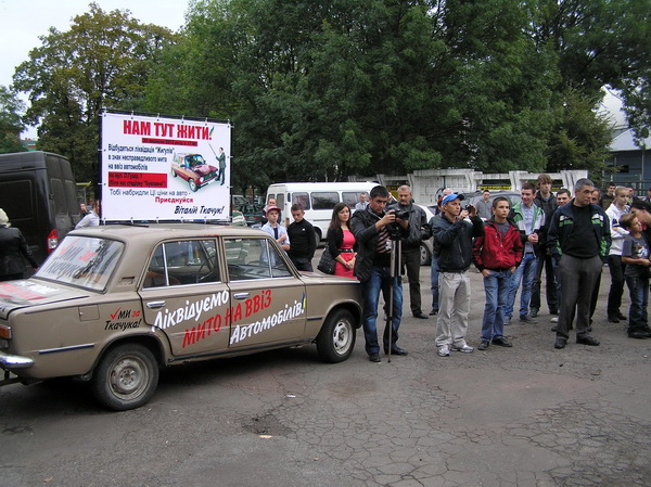 Cвій протест щодо несправедливого і завищеного мита на ввіз автомобілів Віталій Ткачук підтвердив символічним «розбиттям» дітища радянського автопрому машини "Жигулі".