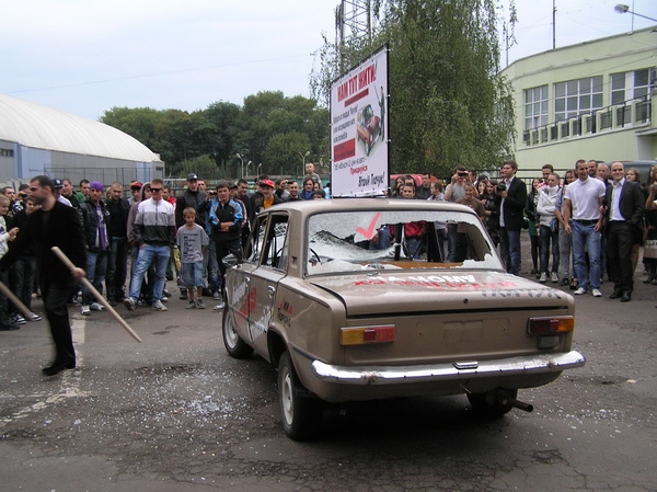 Перші символічні удари по автомобілю зробив сам кандидат у депутати. А потім організаторам навіть довелося стримувати активність присутніх на акції людей, настільки багато було охочих нанести кілька ударів по авто. Дехто навіть пропонував не просто розбити авто, але й перевернути. Важку дерев'яну биту брали в руки не лише чоловіки, але й жінки. Коли бажаючих вдарити по машині більше не виявилося, автівку завели і вона поїхала.Завершилася акція драйвовим виступом рок-виконаців. Загалом вся акція тривала більше години.