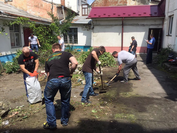 Про те, що сьогодні буде проводитись проведення території, пані Ліна повідомила на своїй сторінці в соціальній мережі Facebook, і як виявилось, охочих допомогти у цій нелегкій справі є досить багато. Так, до суботника приєднались представники влади Чернівецької міської ради, члени об’єднання «Самопоміч».