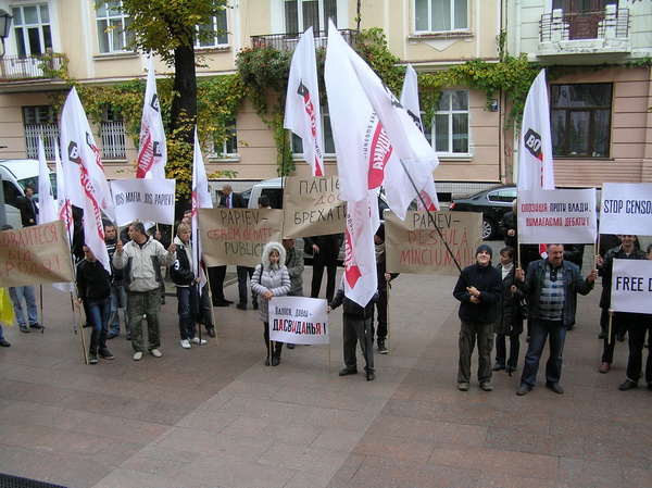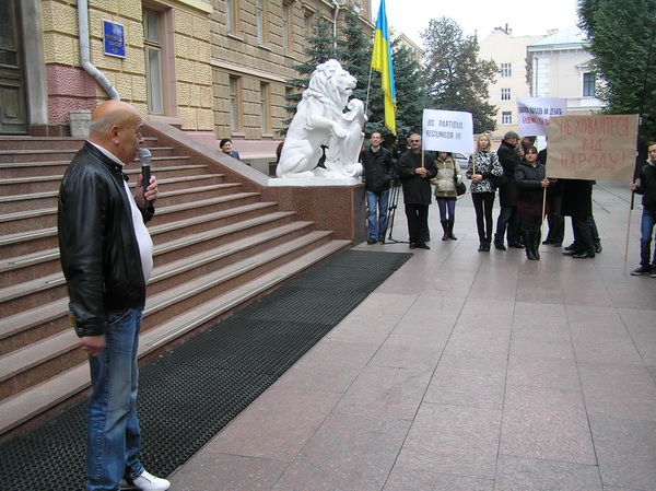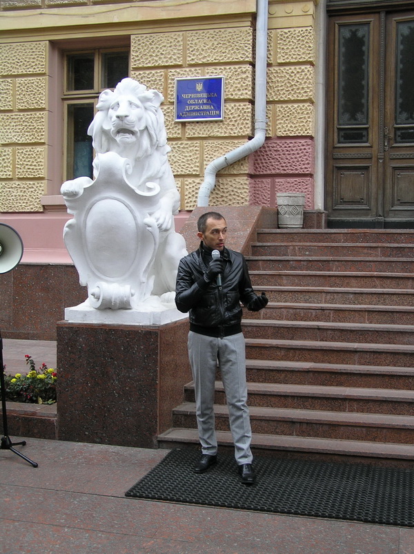 У середу, 24 жовтня, відбулося пікетування обласної державної адміністрації (вул. Грушевського, 1, Будинок з левами) щодо політичної ситуації, яка склалася в Україні. Як повідомив з місця події кореспондент BukNEWS, учасники пікету вимагали від губернатора області Михайла Папієва відкритих дебатів з актуальних проблем сьогодення. Пікет співпав у часі з спільним засіданням голів постійних комісій Чернівецької обласної ради і Сучавської повітової ради та приїздом на Буковину голови Сучавської повітової ради Кетеліна Іоана Некіфора.
