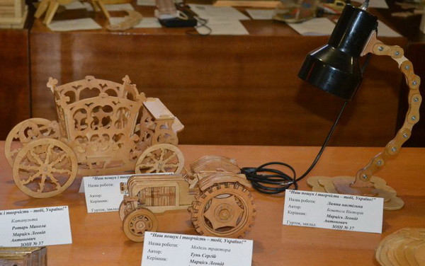 Виставку науково-технічної творчості відкрила методист міського методичного центру управління освіти Чернівецької міської ради Сільвія Німіжан. Привітала учасників конкурсу й заступник директора міського центру науково-технічної творчості Світлана Мурзенко. Всього до огляду представлено 180 експонатів, які виконані у різних техніках – фрезерування, різьба по дереву, токарні роботи, випалювання, технічне конструювання; тут можна побачити і предмети декоративно-ужиткового мистецтва, і творчі моделі літаків, автомобілів та кораблів. Учні творчо та оригінально підійшли до технічного конструювання, додавши йому справжніх мистецьких барв.