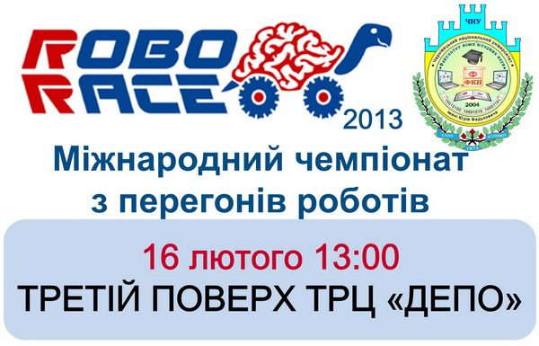 Третій тур третього сезону міжнародного змагання з перегонів роботів “Roborace” 2012/2013 відбудеться 16 лютого 2013 р. у Чернівцях. Змагання проходитиме на третьому поверсі ТРЦ “DEPOt” (вул. Головна 265-А), офіційне відкриття о 13:00 год. Організатором міжнародного чемпіонату є громадська організація “Асоціація Робототехніки” спільно з Чернівецьким національним університетом.