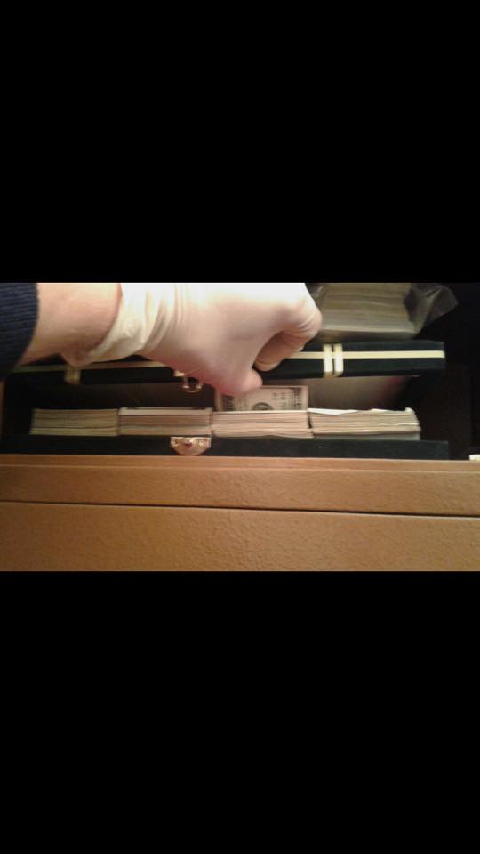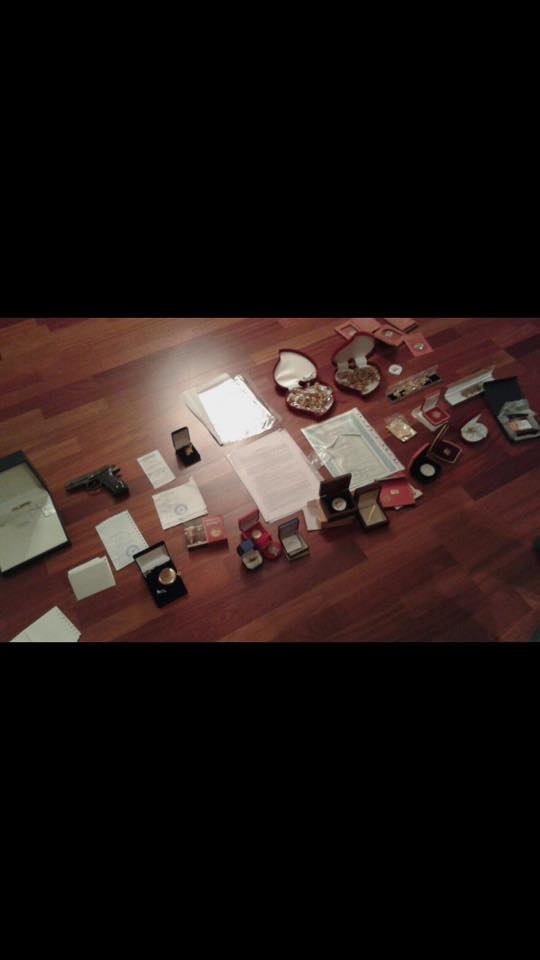 Публікую окремі фото з обшуку домоволодіння, де тільки що виявлений чемодан, в якому знаходяться готівкові кошти на суму в декілька сотень тисяч доларів США, золоті прикраси та ... фашистські хрести