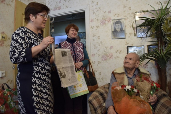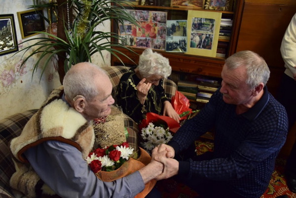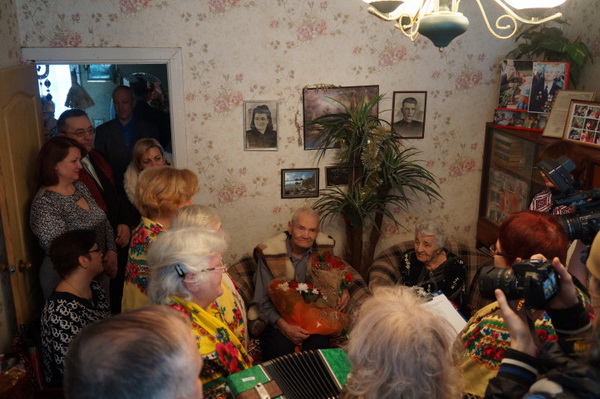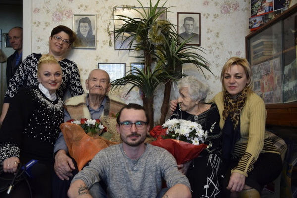 Із помітним хвилюванням до привітань імениннику приєднались і депутат обласної ради Василь Субота, голови міських спілок ветеранів та воїнів-інтернаціоналістів Василь Сплавник і Анатолій Вольський, начальник УПСЗН Геннадій Магденко, а також журналісти Анастасія Жалюк та Інна Гончар, котрі презентували свіжий випуск «Нашої газети. Новодністровськ-інфо», де на двох сторінках надрукована ексклюзивна розповідь про символ миру, добра, любові й працелюбства – нашого ветерана і його любу дружину Любов Марківну, з якою вони йдуть по життю ось уже 72 роки.