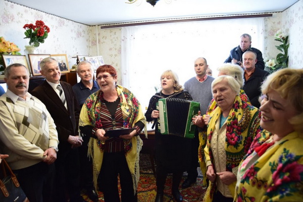 Пісенними ювілейними візерунками яскраво доповнили вітальні миті колектив міського Терцентру «Співучі бабусі» під керівництвом Валентини Федишиної, а на завершення цих пам’ятних гостин під супровід Михайла Рожка вся делегація подарувала ювіляру та всій родині музичне мереживо незабутніх пісень воєнних літ, котре із хвилюванням підтримувало і подружжя Моргуненків.
