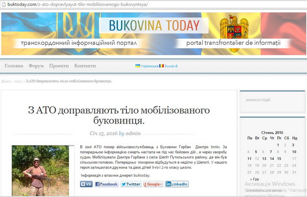 17.01.2016 року о 8:30 в с. Шепіт Путильського району відбудеться поховання військовослужбовця призваного по мобілізації солдата 58 омбр Горбана Дмитра Ілліча.
