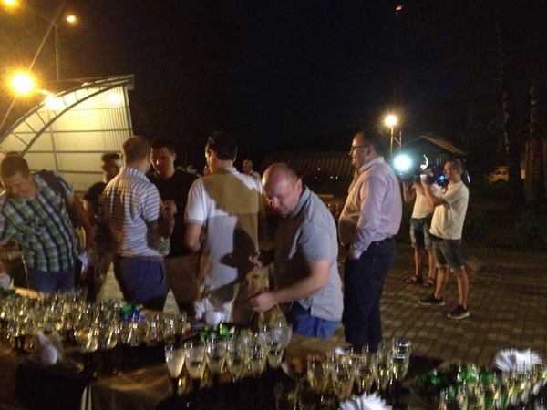 Олексія Каспрука теж підловили біля келихів дармового шампанського для пасажирів літака і на відміну від Продана, це саме дармове шампанське у Каспрука в руці