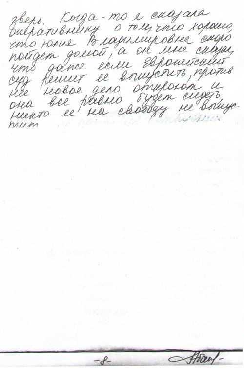 - Данный документ составлен мной, Абапловой Юлией Константиновной, 27.12.1975 года рождений, с целью обезопасить себя и свою сокамерницу Тимошенко Юлию Владимировну. Документ написан 25.03.2012 мной собственноручно.