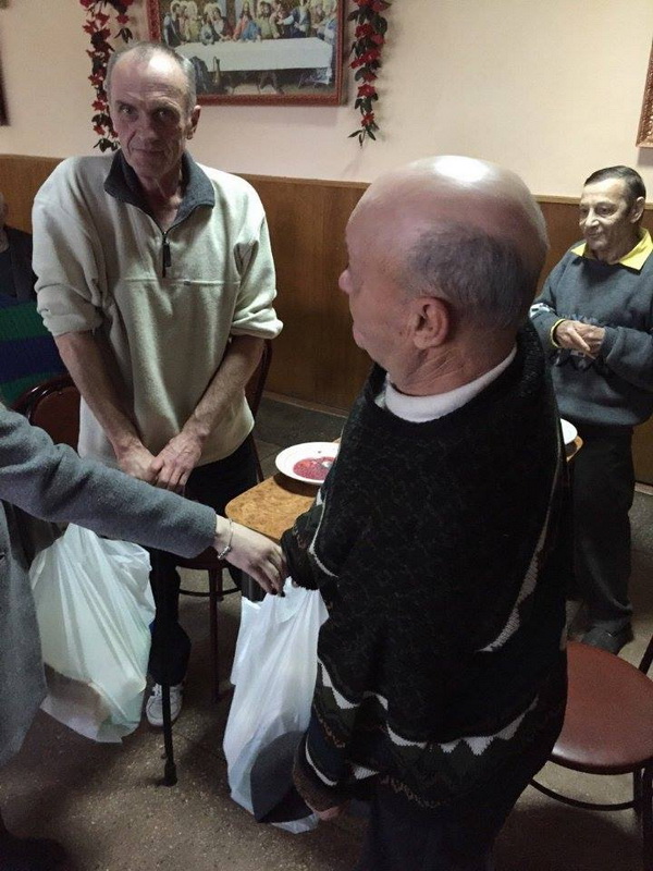 Солодощі, соки та засоби гігієни – ось подарунки, які автомайданівців щомісяця вручають винуватцям свят. Хоч це і не багато – старенькі завжди висловлюють подяку, адже для них прихід гостей і справді важливий. До того ж в пансіонаті насправді є брак засобів особистої гігієни, тому активісти намагаються принести в подарунок те, що дійсно необхідне.