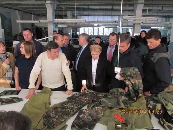 Лідер партії ВО "Батьківщина" Юлія Тимошенко у середу прибула до Чернівців. Вона відвідала швейну фабрику Nova на вулиці Коростишівській, яка виготовляє зимовий одяг для бійців АТО, де замовила тисячу комплектів одягу для двох військових батальйонів на Сході України. Виконавця замовлення попросили у якнайстисліші терміни виготовити необхідну кількість форми.