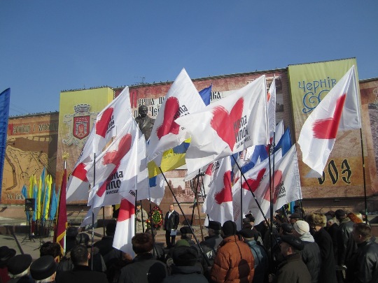 Під таким гаслом, висловленим головою обласної організації партії ВО «Батьківщина» Іваном Мунтяном, відбувся сьогодні мітинг об’єднаної опозиції на вшанування Шевченківських днів у Чернівцях. Влада до останнього не давала згоди на проведення цього мітингу, аби не зіпсувати свої враження від власного відзначення 198-ї річниці з дня народження Кобзаря, яке святкували пізніше за опозицію. Але бажання народу вшанувати свого Пророка, а не створити «масовку» для влади, виявилося сильнішим.